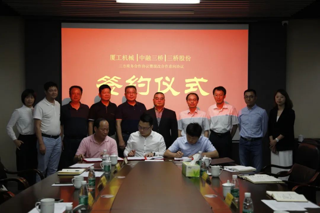 福建省機(jī)械工業(yè)聯(lián)合會(huì)會(huì)長(zhǎng)許振明;廈工股份公司總裁林春明、副總裁兼財(cái)務(wù)總監(jiān)李喜勇、總工程師黃鶴艇;中融三橋公司蔡報(bào)軍、董事長(zhǎng)姜洋、總經(jīng)理吳繼成出席簽約儀式。