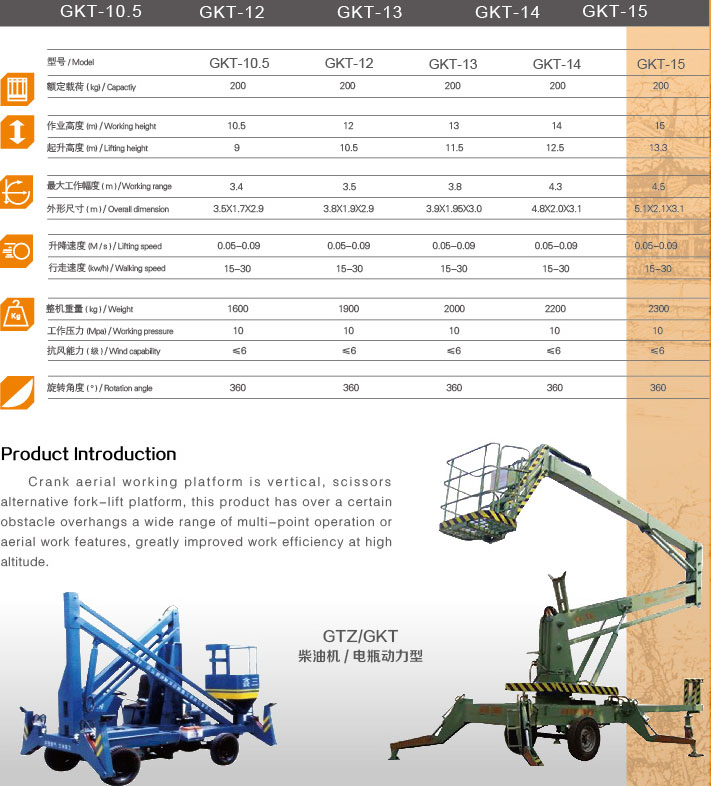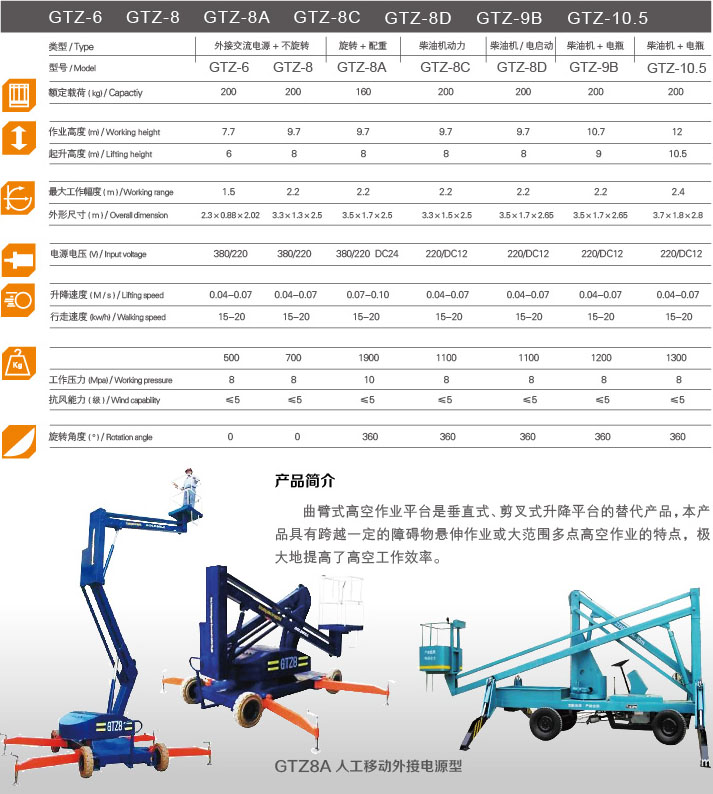 曲臂式高空作業(yè)平臺是垂直式、剪叉式升降平臺的替代品,本產(chǎn)品具有跨越一定的障礙物懸伸作業(yè)或大范圍多點(diǎn)高空作業(yè)的特點(diǎn),極大地提高了高空工作效率。